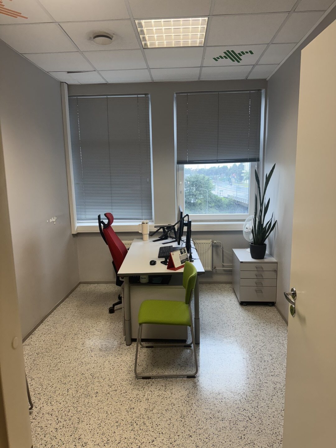 - Büroopinnal 2 väiksemat ja 2 suuremat kabinetti, köök-puhkeruum. Tualett asub üldkoridoris